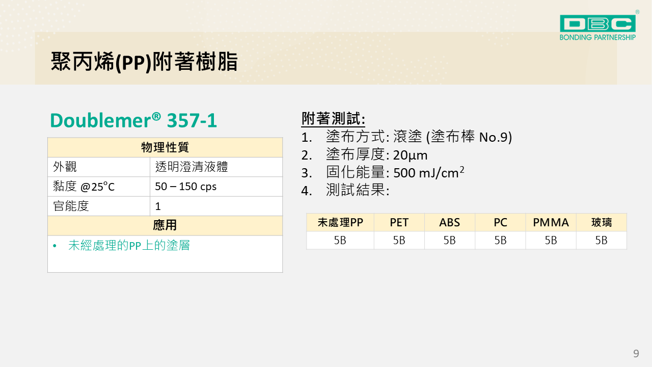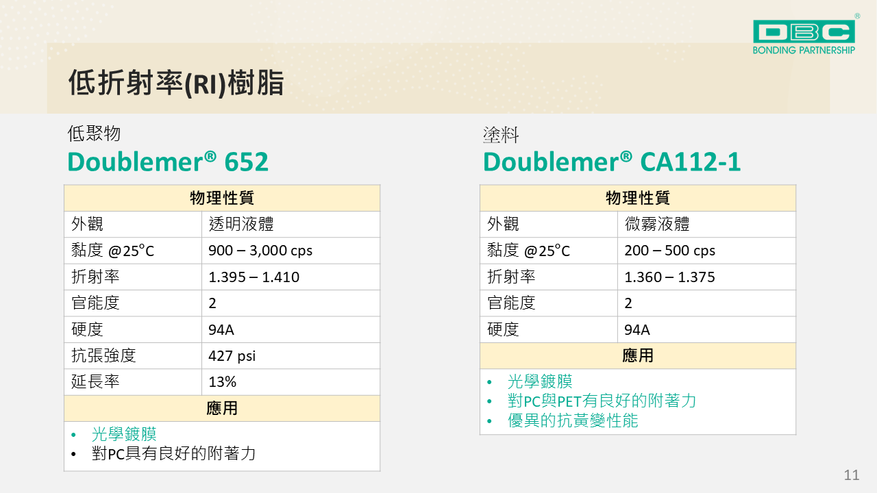 應用於阻燃材料、優異附著性、低折射率、準分子塗料、LED固化