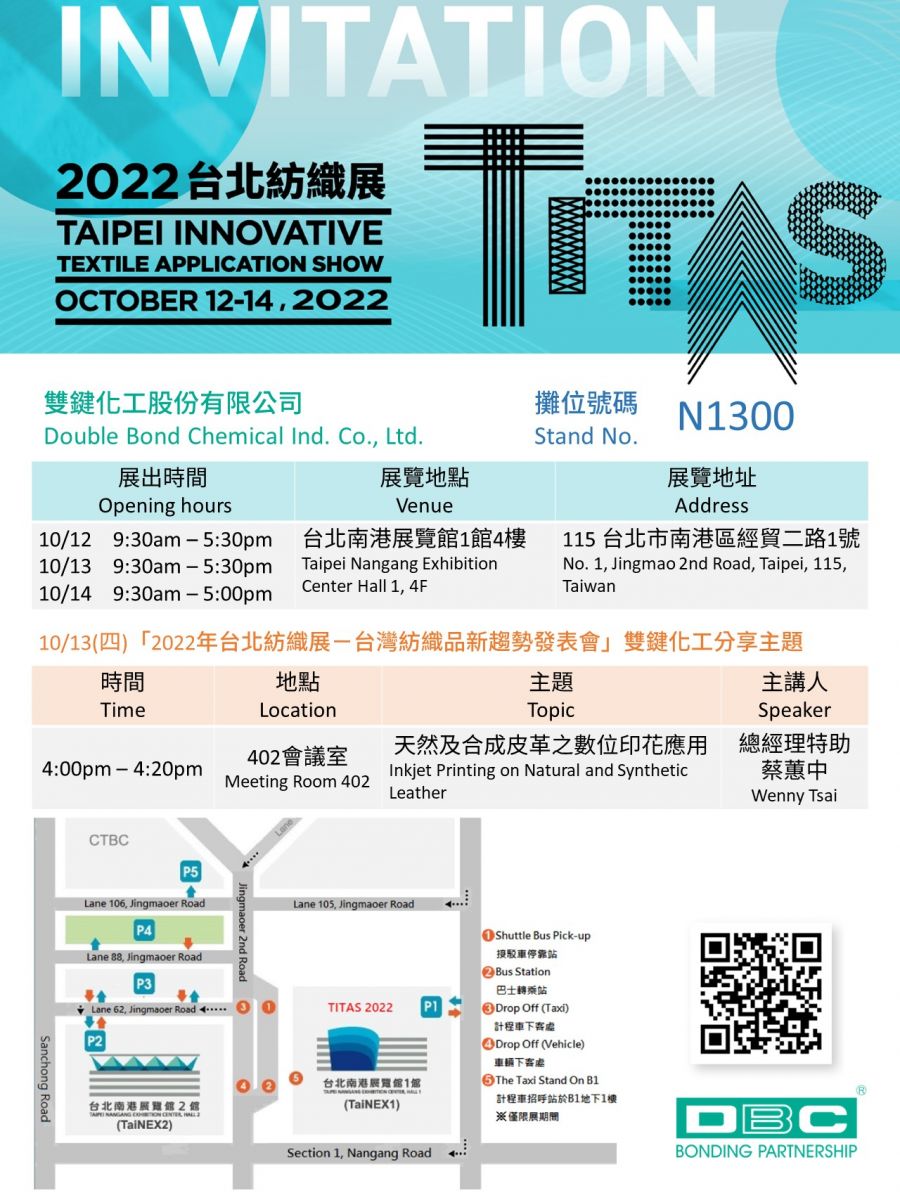 誠摯邀請各位來訪雙鍵化工於TITAS的展位 (N1300)