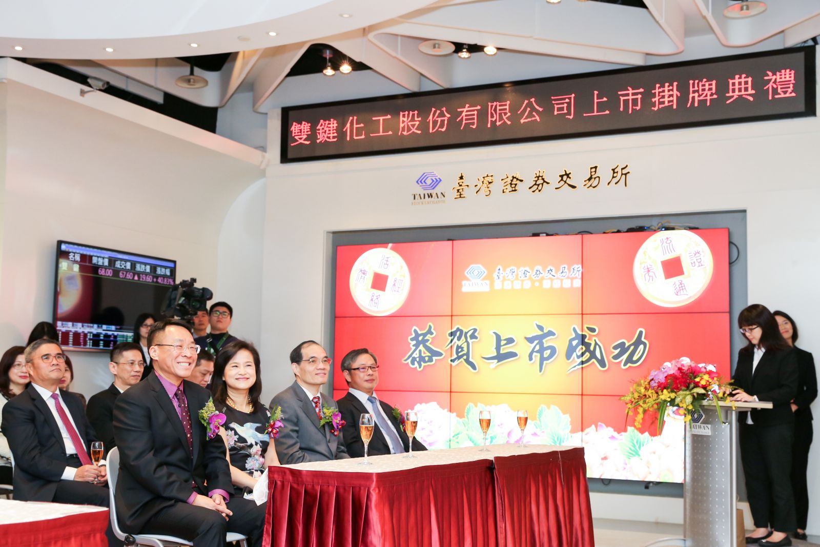 雙鍵化工(股票代號:4764)2018年1月4日股票上市掛牌圓滿成功。